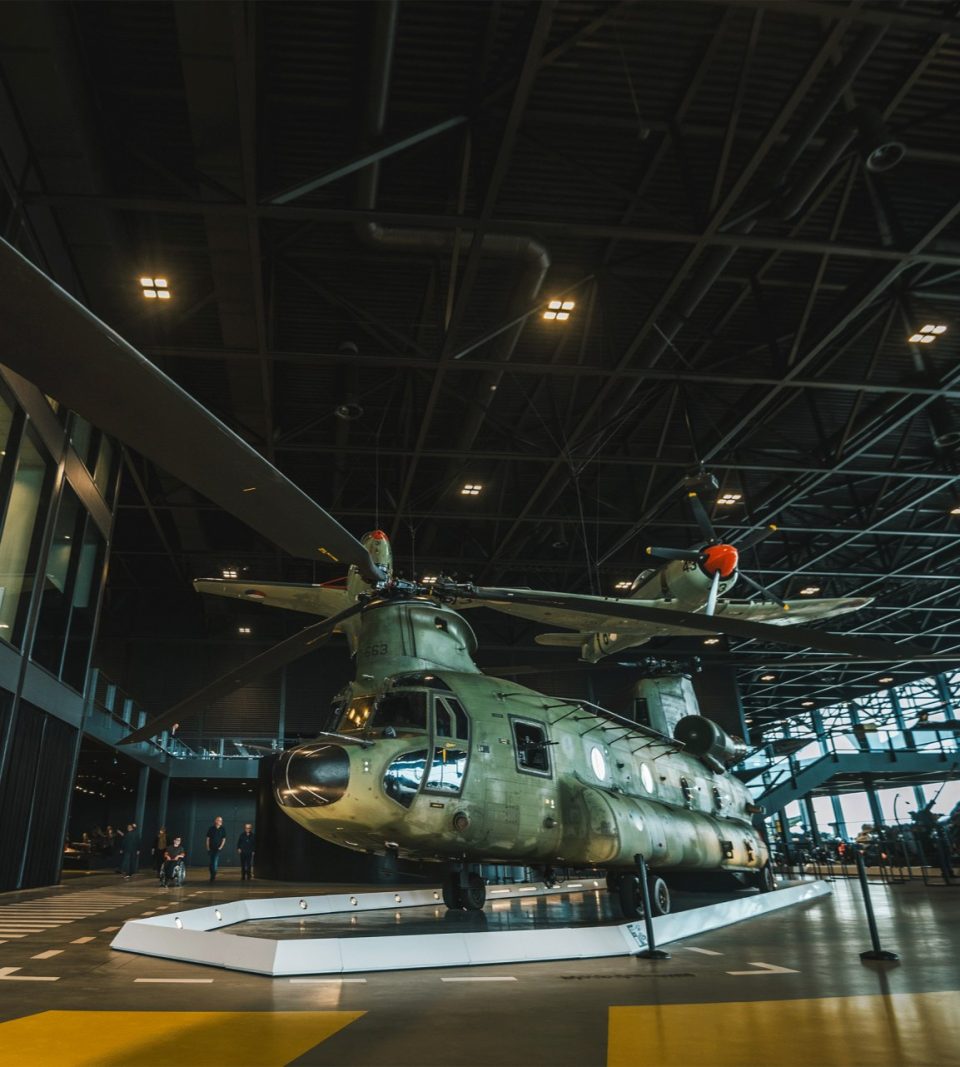 Neem een exclusief kijkje in de Chinook helikopter en ontdek hoe het is om in deze imposante helikopter te staan of stap aan boord van de historische Breguet Atlantic. Laat je meevoeren door de verhalen van onze deskundige experts die de geschiedenis tot leven brengen.