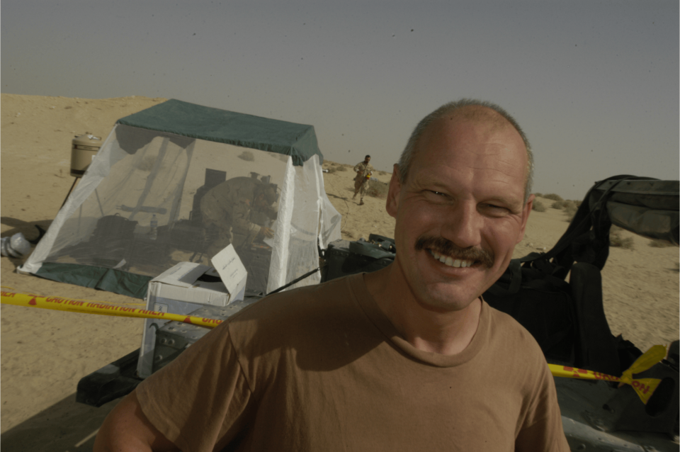 In 2003 werd hij uitgezonden naar zuidelijk Irak, als onderdeel van de Nederlandse missie ter ondersteuning van Amerikaanse en Britse collega’s in de provincie Al Muthanna. Het doel: stabiliteit brengen na de val van Saddam Hussein. De basis was in As Samawah, heet, stoffig en ver van huis.