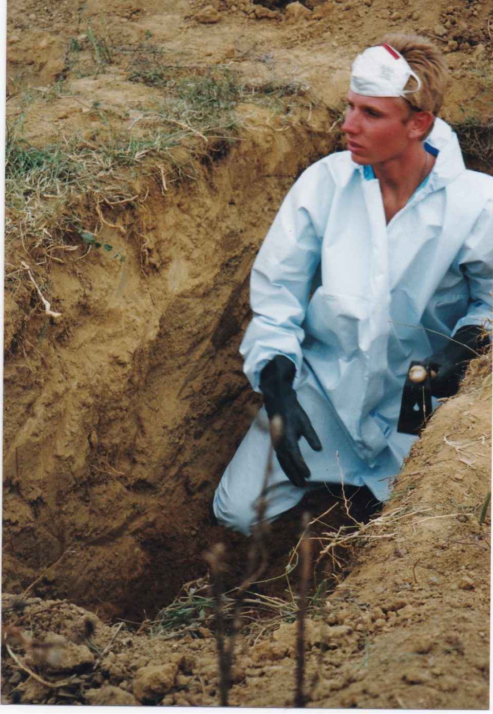 Hij sloot zich aan bij een Engels forensisch team en werkte zeven dagen per week aan de opgraving van massagraven, het bergen van lichamen, het uitvoeren van secties, het identificeren van slachtoffers aan de hand van foto’s, kleding en persoonlijke bezittingen. In dienst van het Joegoslaviëtribunaal keerde hij in 2000 terug om dit werk voort te zetten.