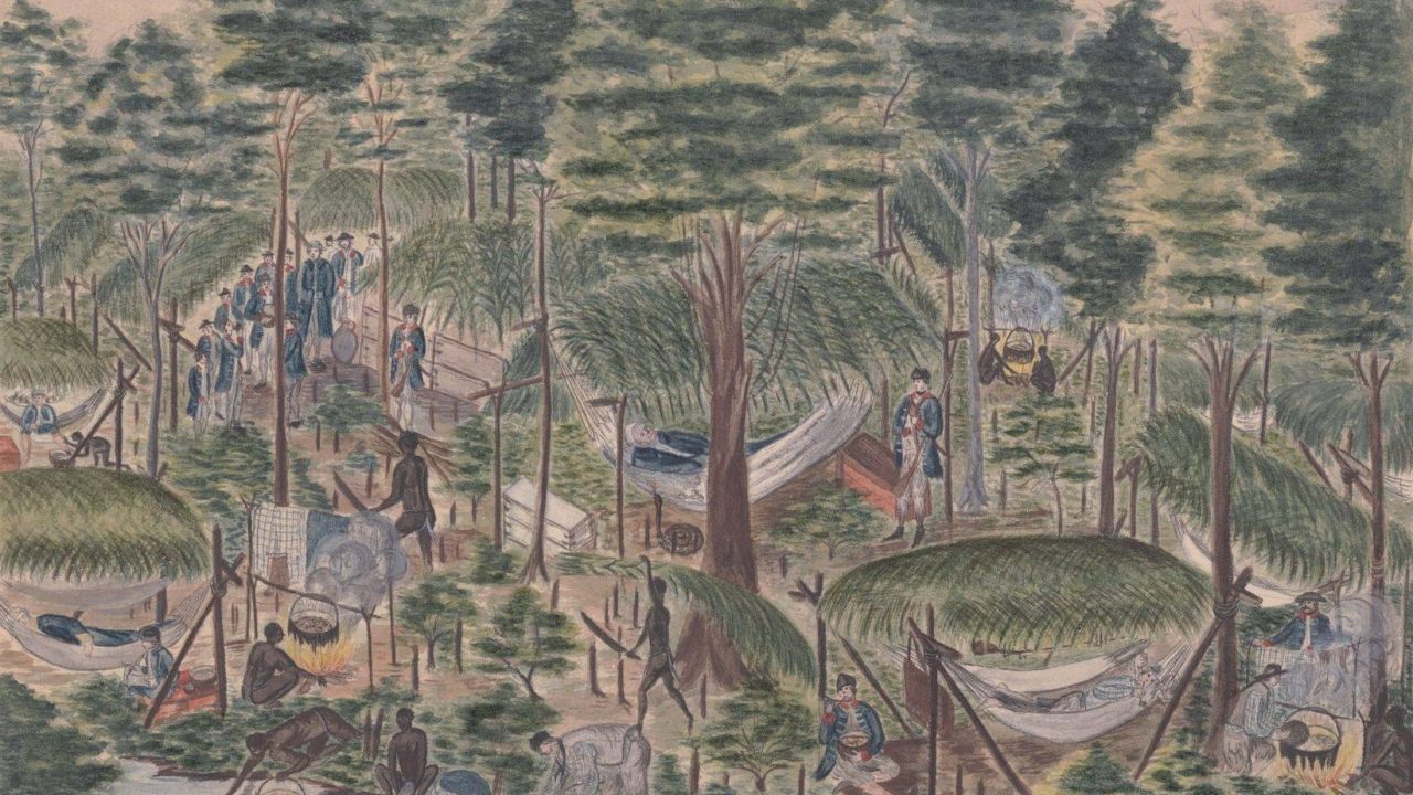 Luitenant Georg Wilhelm Luck maakte in 1775 een bijzondere aquarel (een schilderij met waterverf). Dit deed hij tijdens zijn missie in Suriname. Hij maakte onderdeel uit van het leger van kolonel Fourgeoud. Op de aquarel is een legerkamp diep in het Surinaamse regenwoud te zien. Waarschijnlijk is de aquarel onderdeel van een schetsboek dat Luck bijhield in deze tijd.
