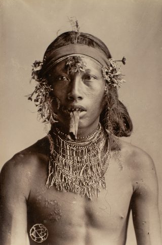 “In een groot fotoalbum stuitte ik op dit studioportret: een man, vermoedelijk een dorpshoofd, in traditioneel krijgskostuum uit Zuid-Nias. De foto is gemaakt door Christiaan Benjamin Nieuwenhuis, een bekende fotograaf uit de koloniale tijd.” Indonesië was tot het midden van de twintigste eeuw een kolonie van Nederland. De archipel werd toen Nederlands-Indië genoemd. In 1945 riep Soekarno de Republiek Indonesië uit.