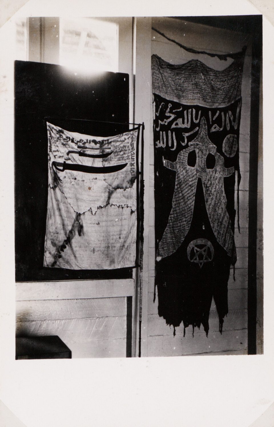 “Nog zo’n opmerkelijk album is het album over het Atjehsch Leger Museum.” In Banda Aceh op Sumatra (destijds Koeta of Kota Radja genoemd) opende in 1937 een militair museum. Het museum was gewijd aan de Atjeh-oorlog (1873-1904). Deze langdurige koloniale oorlog was een gewelddadige poging van Nederland om Atjeh onder koloniaal gezag te brengen en te houden. “Het museum begon als een kleine verzameling, maar groeide uit tot een flinke tentoonstelling met wapens, foto’s, uniformen en andere voorwerpen uit de oorlog. Het getoonde objecten werden vanuit een koloniaal perspectief getoond.” De plannen voor een nieuw museum kwamen door de Japanse inval in Nederlands-Indië in 1942 nooit van de grond. Na de Japanse inval is de collectie zoekgeraakt. “Op de foto zie je de museumopstelling van een buitgemaakte Atjehse vlag en vaandel.”